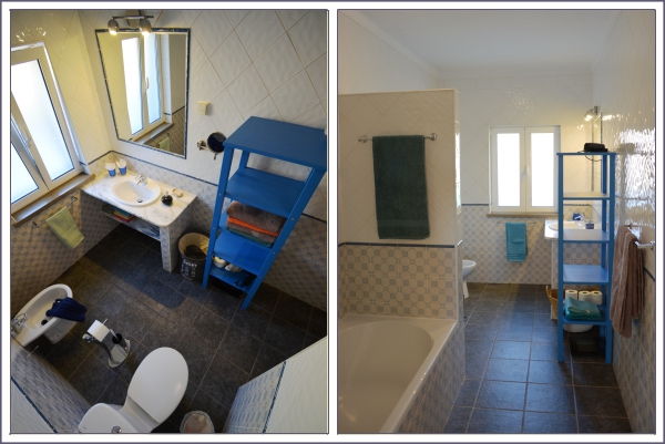 In der benachbarten "blauen" Küche ist an alles gedacht was den Urlaub erleichtert und auch hier können Sie sich die Küchenarbeit mit einem gelegentlichen Blick auf die Ria Formosa versüßen.